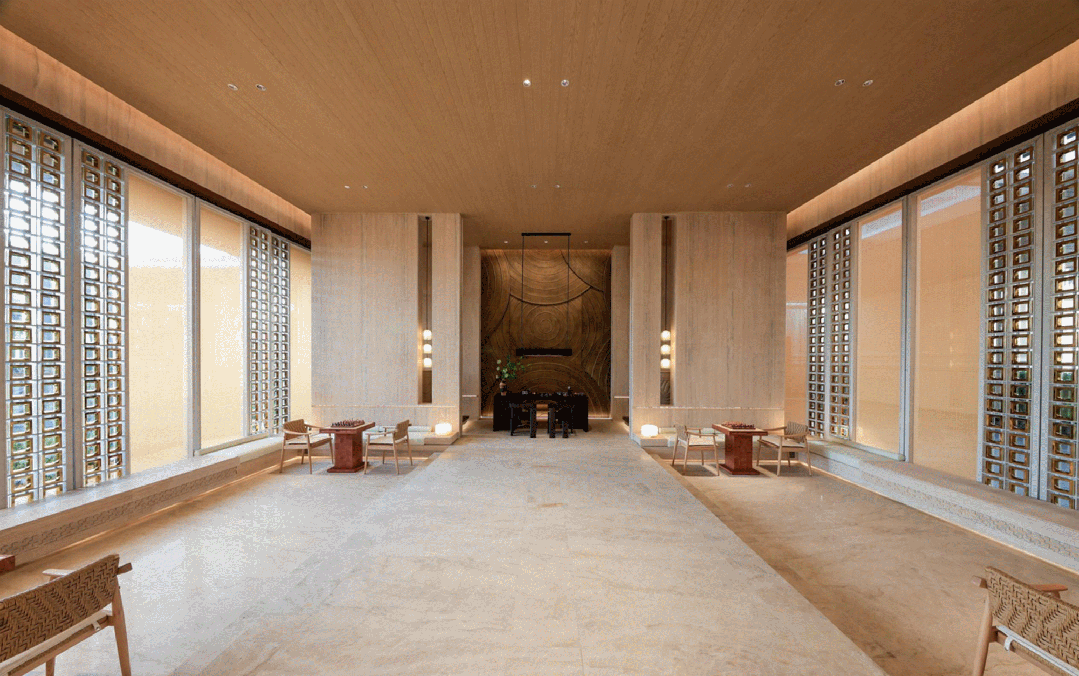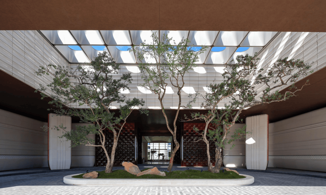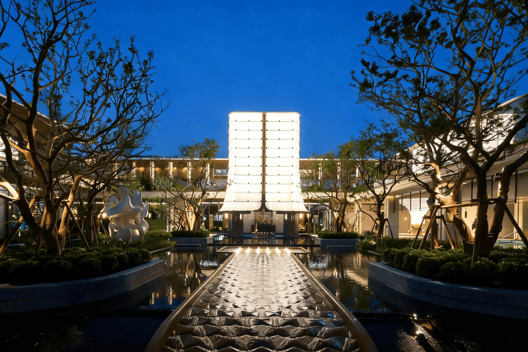 两侧进口油橄榄苍劲列植。付与空间国际化的文雅取从容。